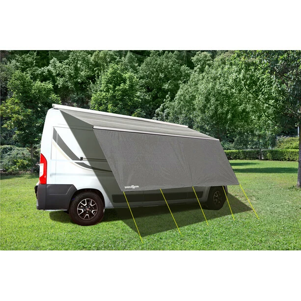 Comfortable sun awnings made of UV-resistant synthetic material. Edged sides, with eyelets. Easy to install onto the rails of caravans, campers or vans. Suitable for Fiamma, Thule and Omnistor awnings. Pegs and ropes are included.