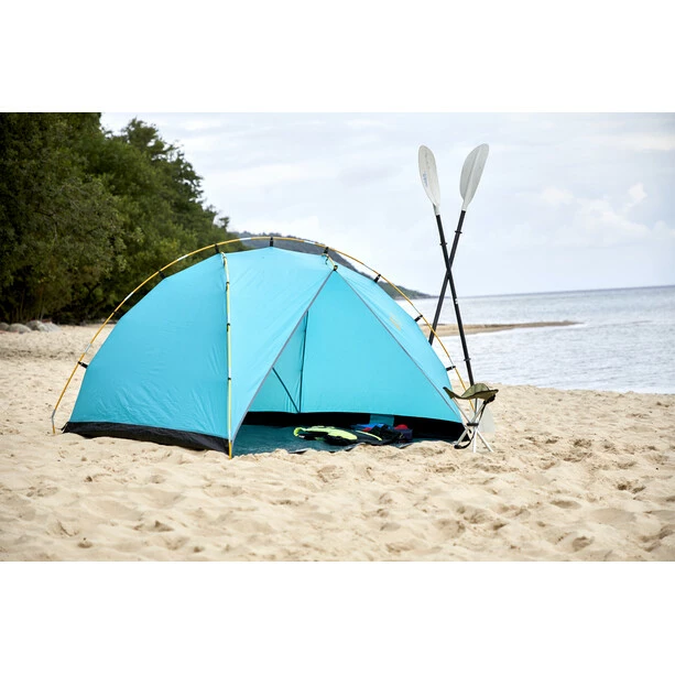 Enjoy beach life with the new innovative Tonto Beach Tent 3. The beach tent can be set up and taken down quick. The ridge pole and the two small poles are clipped to the tent, the Velcro sand pockets can be filled with sand for good ground fixation, so Tonto can be set up even without pegging out all guy lines. It offers reliable UV protection and shields from wind and sun reliably.