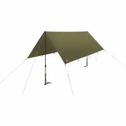 A sheet of tear proof tape weave with reinforced hem and eyelets at the corners. Useful for any purpose, particularly as a tent ground sheet.
