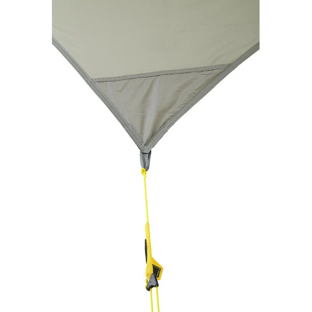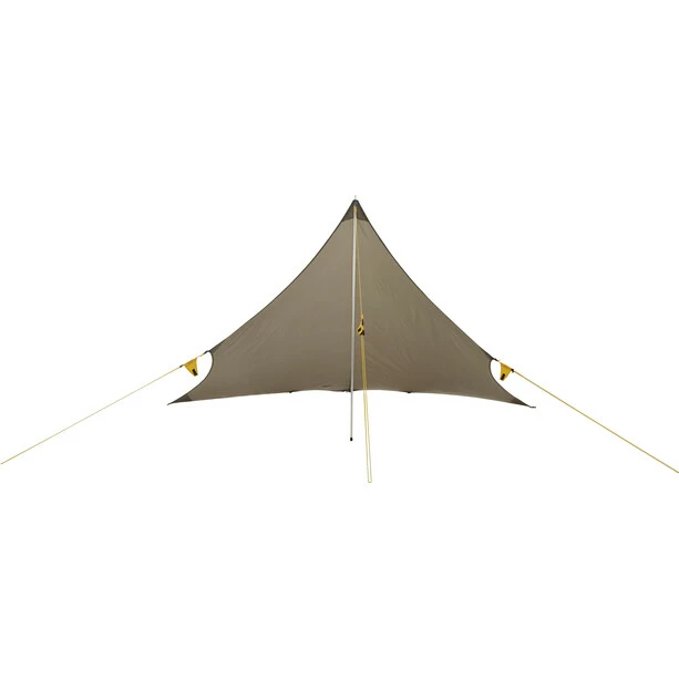 The Wing is a universal tent roof with minimal area cut. It can be combined with most tents to obtain a weather-protected entrance area. It can also be used solo set up as an ultralight weather shelter. Reinforced guy loops and guy lines with line tensioners make the Wing very stable. The Wing is offered in two different material versions. Depending on the intended use, the inexpensive Travel Line or the lighter Zero G Line are available.